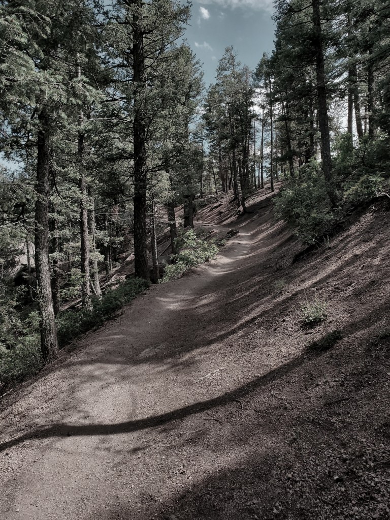 Sure enough, my excitement could only carry me up, say, 700 steps before exhaustion started settling into my joints, femurs, ankles, and brain. It’s an ironic way to realize that life isn’t eternal and not everyone is capable of such simple maneuvers as bringing your knees near your chest multiple times in pursuit of a beautiful view and glorious satisfaction. But as sure and stark as the timberline, my legs became Jell-O, disabling my excitement a little. Trees on the side of the ties provided cool and refreshing shade. Much of the path angles differently than in other areas, and sometimes the top goes out of view, shielded by the sheer grade of the railroad ties until it levels off slightly. I marveled at the hikers daring to make this their descent: surely I’d fall and tumbleweed all the way back to Manitou Springs.