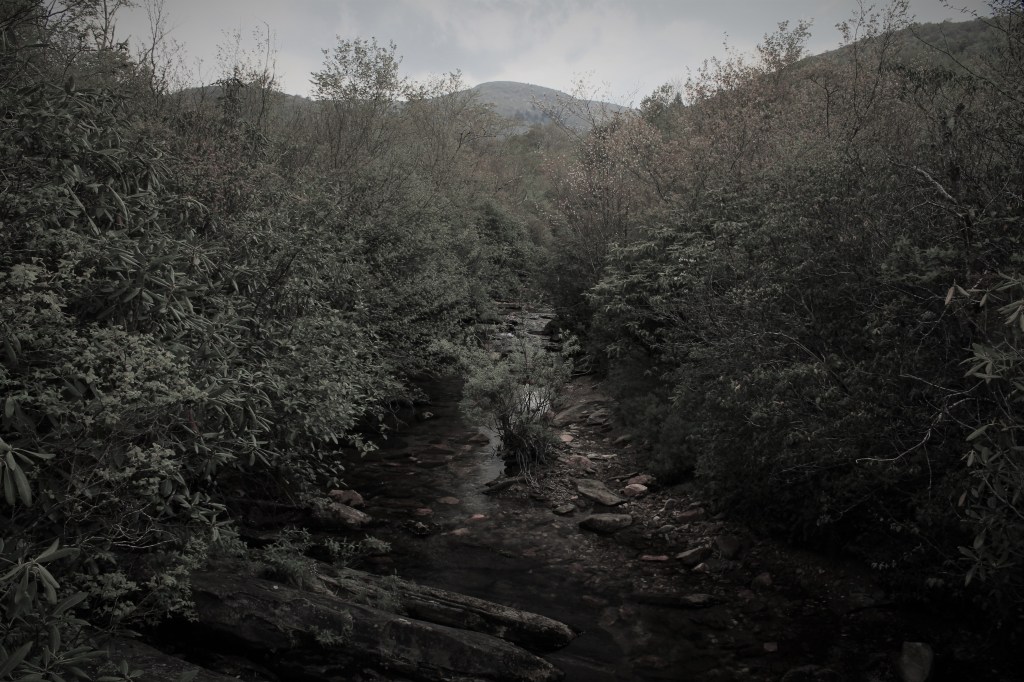 When I inevitably slipped up and chose the wrong course, I found myself walking along two rails of boards strung from the dirt path and through willowy trees that reminded me more of Spanish moss in Savannah than anything in the high Appalachians. Another wrong course took me to the bank of another stream, this time stiller and glassier, and I grabbed shells from the earth as if I were at the beach and not high in the North Carolina mountains. I let the dirt and tiny shells fall through my hand, noticing the clouds looking a bit darker and my confidence in the sun wavering.